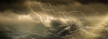 - Sudden, fierce storm with waves breaking against the boat