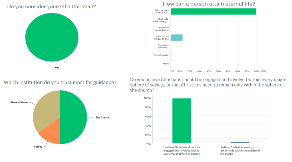 The majority of people surveyed (80%) believe their daily concerns and questions are being answered by the church, but according to the survey, only 50% trust the answers or guidance they are receiving from the church.
