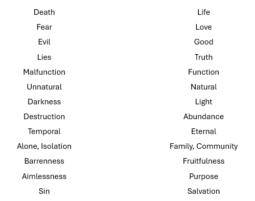 Obedience in one direction leads to death, not just one day but here and now, and this death manifests itself in our current lives in many ways and impacts all who are around us.